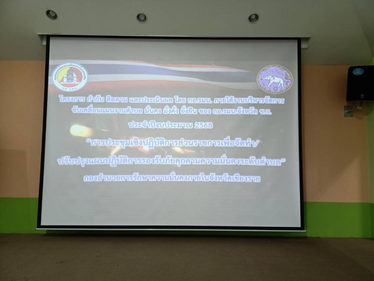 นางสาวอุบล ใจวรรณะ นายกเทศมนตรีตำบลแม่สายมิตรภาพ เข้าร่วมประชุม เชิงปฏิบัติการส่วนราชการเพื่อจัดทำ ปรับปรุงแผนปฏิบัติการ และเสนอแผนงานโครงการกำกับติดตามและประเมินผล แผนตำบลมั่นคง มั่งคั่ง ยั่งยืน รองรับภัยคุกคาม ประเด็นปัญหาของตำบล ประจำปีงบประมาณ 2568 ในพื้นที่ตำบลแม่สาย อำเภอแม่สาย จังหวัดเชียงราย โดยมีพันเอกจักวีร์ เสนีย์วรยุทธ์ รองผู้อำนวยการรักษาความมั่นคงภายในจังหวัดเชียงราย (ฝ่ายทหาร) กองอำนวยการรักษาความมั่งคงภายในจังหวัดเชียงราย (กอ.รมน.ชร) เป็นประธานการประชุม ณ ห้องประชุมเทศบาลตำบลแม่สายมิตรภาพ