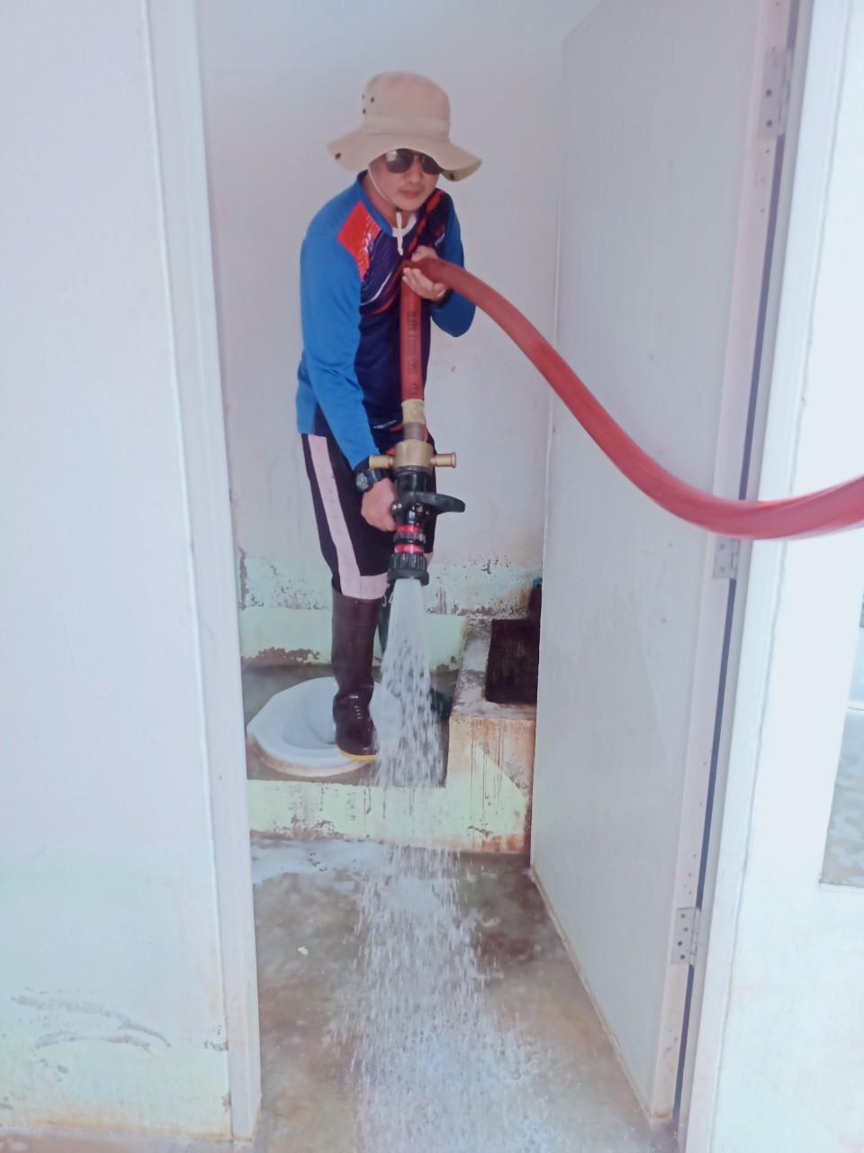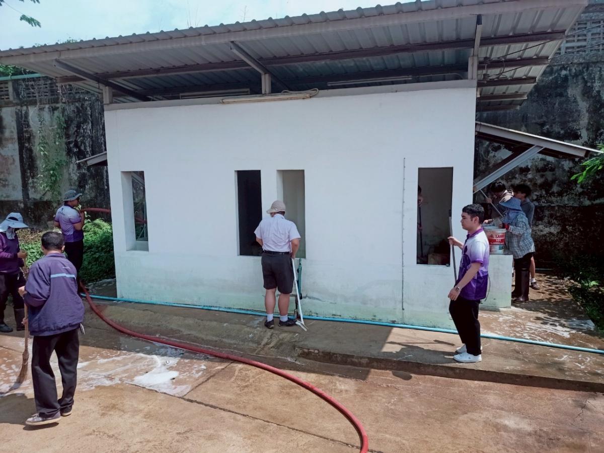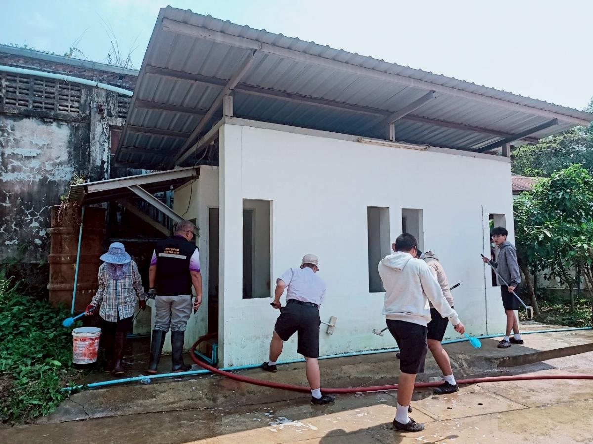 ร้อยโทกิตติชัย เจริญยิ่ง ปลัดเทศบาล ปฎิบัติหน้าที่นายกเทศมนตรีตำบลแม่สายมิตรภาพ พร้อมพนักงานเทศบาล ร่วมกิจกรรมสงกรานต์ ส้วมสะอาดทั่วไทย มั่นใจมาตรฐาน HAS ประจำปี 2568 เพื่อล้างทำความสะอาดห้องน้ำ ให้ได้ตามมาตรฐาน HAS (H: HEALTH, A: ACCESSIBILITY, S: SAFETY) ณ สาธารณะหนองกัด หมู่ 3 บ้านสันผักฮี้