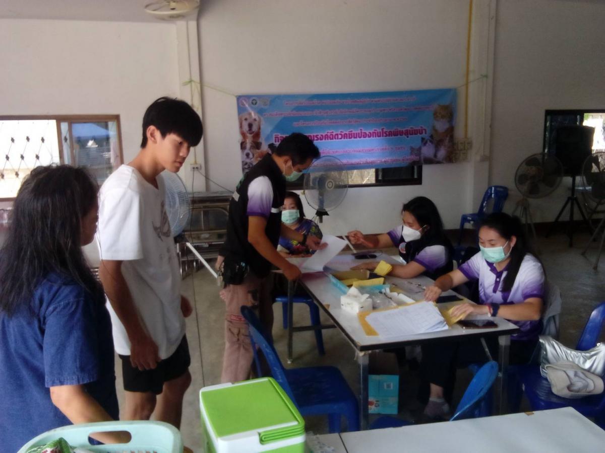 ซึ่งในวันนี้ได้ลงพื้นที่ออกหน่วยฉีดวัคซีนป้องกันโรคพิษสุนัขบ้าให้กับประชาชนในชุมชนบ้านป่ายางชุม หมู่ 6 ณ ศาลาเอนกประสงค์ประจำหมู่บ้าน
