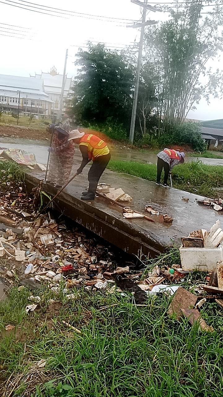 งานสาธารณสุขและสิ่งแวดล้อม เทศบาลตำบลแม่สายมิตรภาพ ดำเนินการ จัดเก็บขยะที่ตกค้างขวางทางน้ำ เส้น RMC1 คลอง 2L