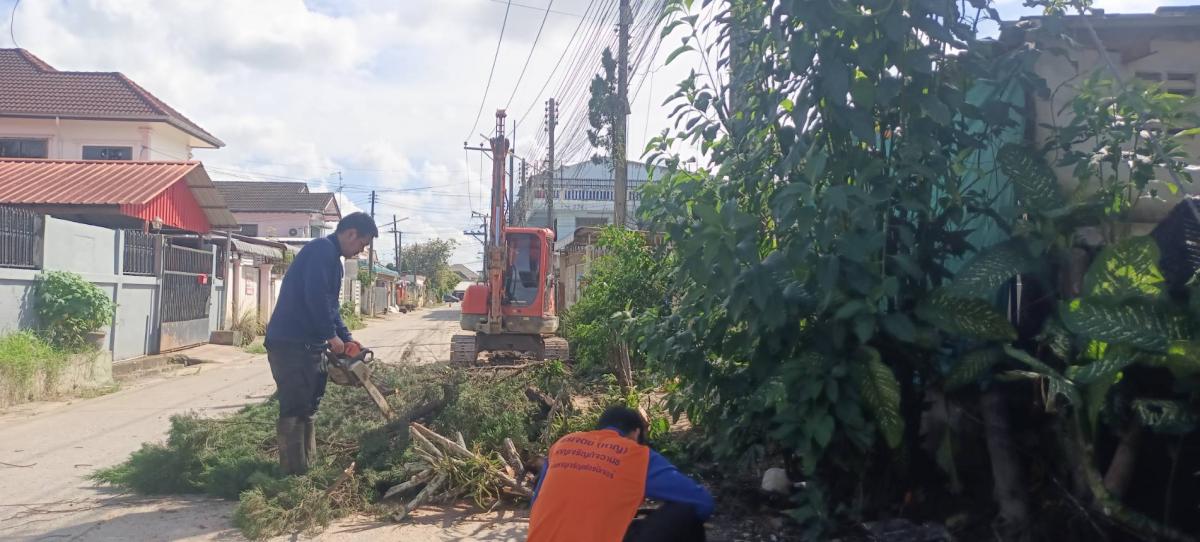 .ตัดต้นไม้ที่ขวางทางระบายน้ำ ปิยะพร ถนน 4 บ้านเหมืองแดงปิยะพร หมู่ 13