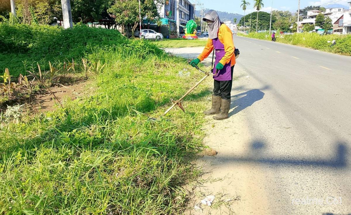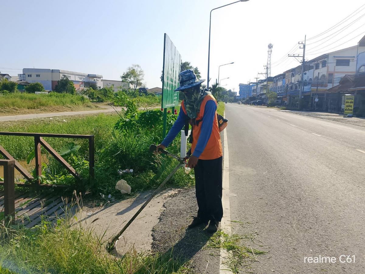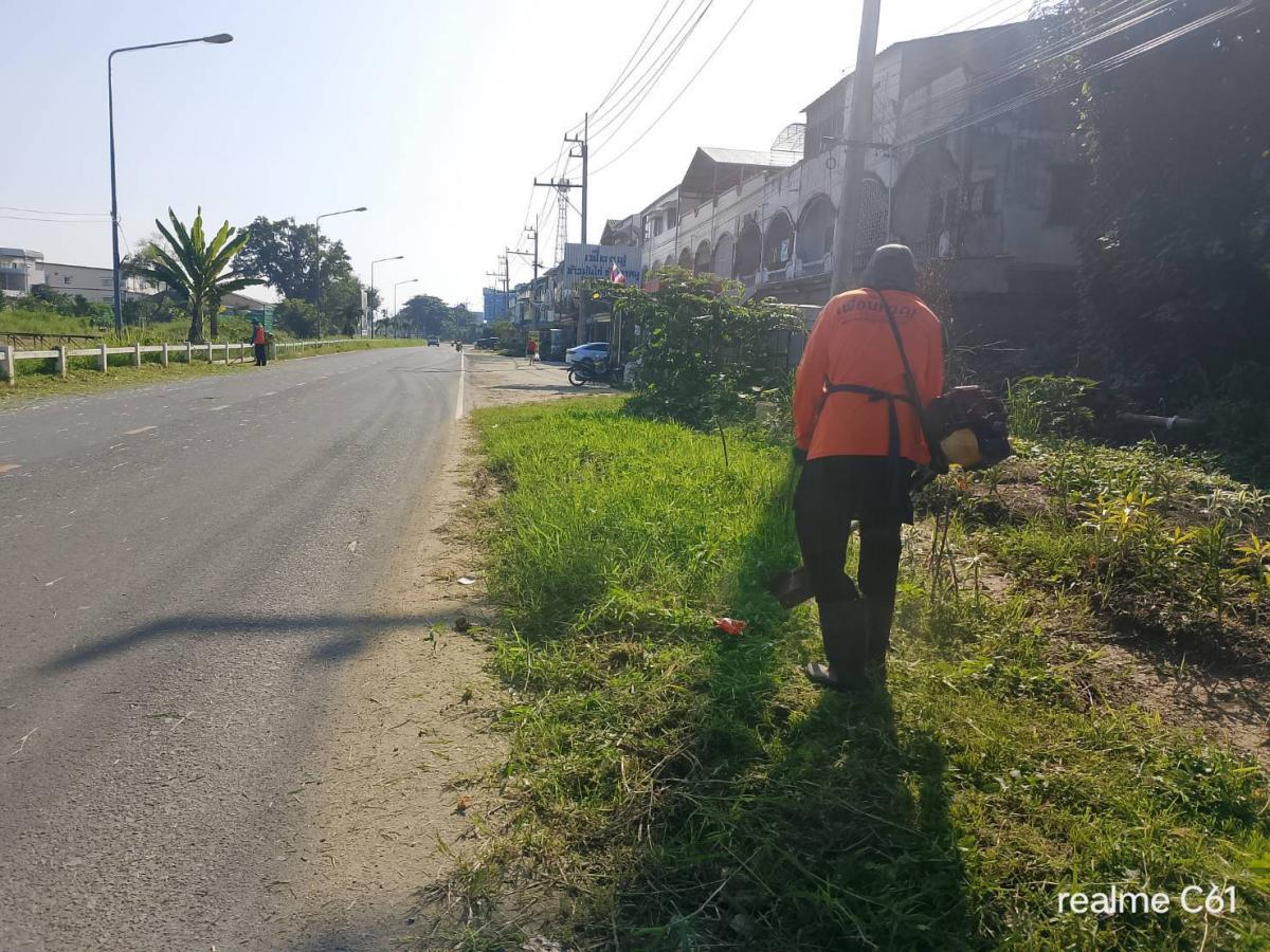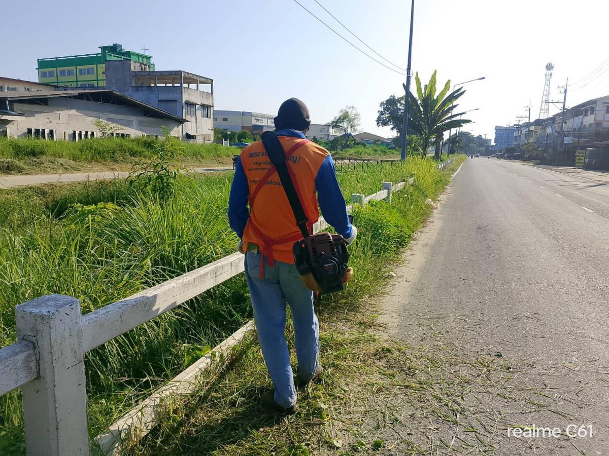 นายกเทศมนตรีตำบลแม่สายมิตรภาพ มอบหมายให้เจ้าหน้าที่ งานสาธารณสุขและสิ่งแวดล้อม สำนักปลัดเทศบาล ลงพื้นที่ดำเนินการตัดหญ้า บริเวณ ถนนเลียบคลองชลประทาน 1L-RMC1