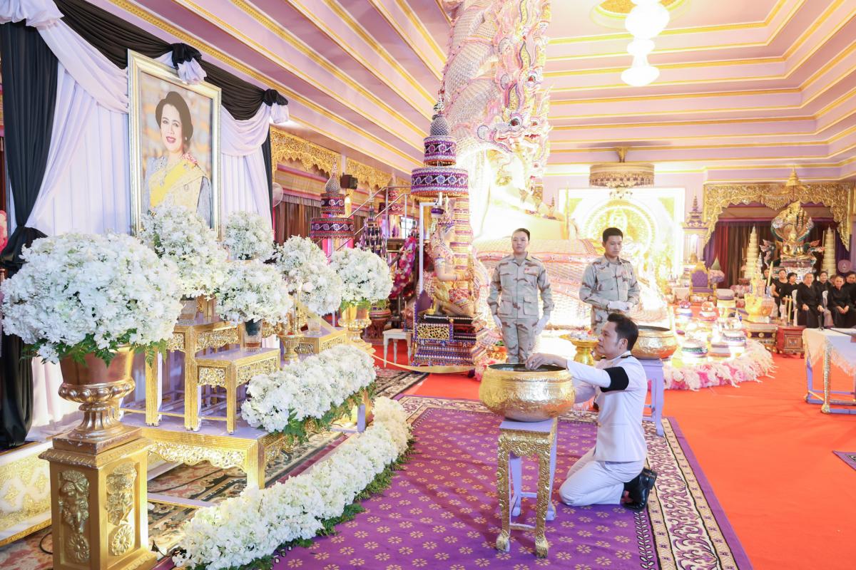 และนายจารุวิทย์ ปัญญาหาร เจ้าพนักงานธุรการชำนาญการ ร่วมพิธีถวายน้ำสรงพระบรมศพ เบื้องหน้าพระฉายาลักษณ์ สมเด็จพระนางเจ้าสิริกิติ์ พระบรมราชินีนาถ พระบรมราชชนนีพันปีหลวง ณ วัดพระธาตุดอยเวา อำเภอแม่สาย จังหวัดเชียงราย โดยมี นายวรายุทธ ค่อมบุญ นายอำเภอแม่สาย เป็นประธานในพิธี