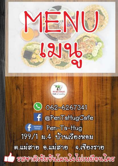 เฟสบุ๊ค : ร้านเป็นตาฮักคาเฟ่ (Pen-Ta-Hug) อ่านต่อได้ที่https://www.facebook.com/PenTaHugCafe