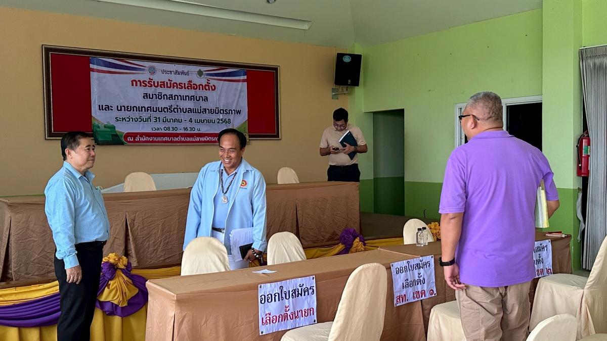 กำหนดการรับสมัครรับเลือกตั้ง ระหว่างวันที่ 31 มีนาคม - 4เมษายน 2568 ตั้งแต่เวลา 08.30 น.-16.30 น. ณ ห้องประชุมมิตรภาพ ชั้น 2 สำนักงานเทศบาลตำบลแม่สายมิตรภาพ