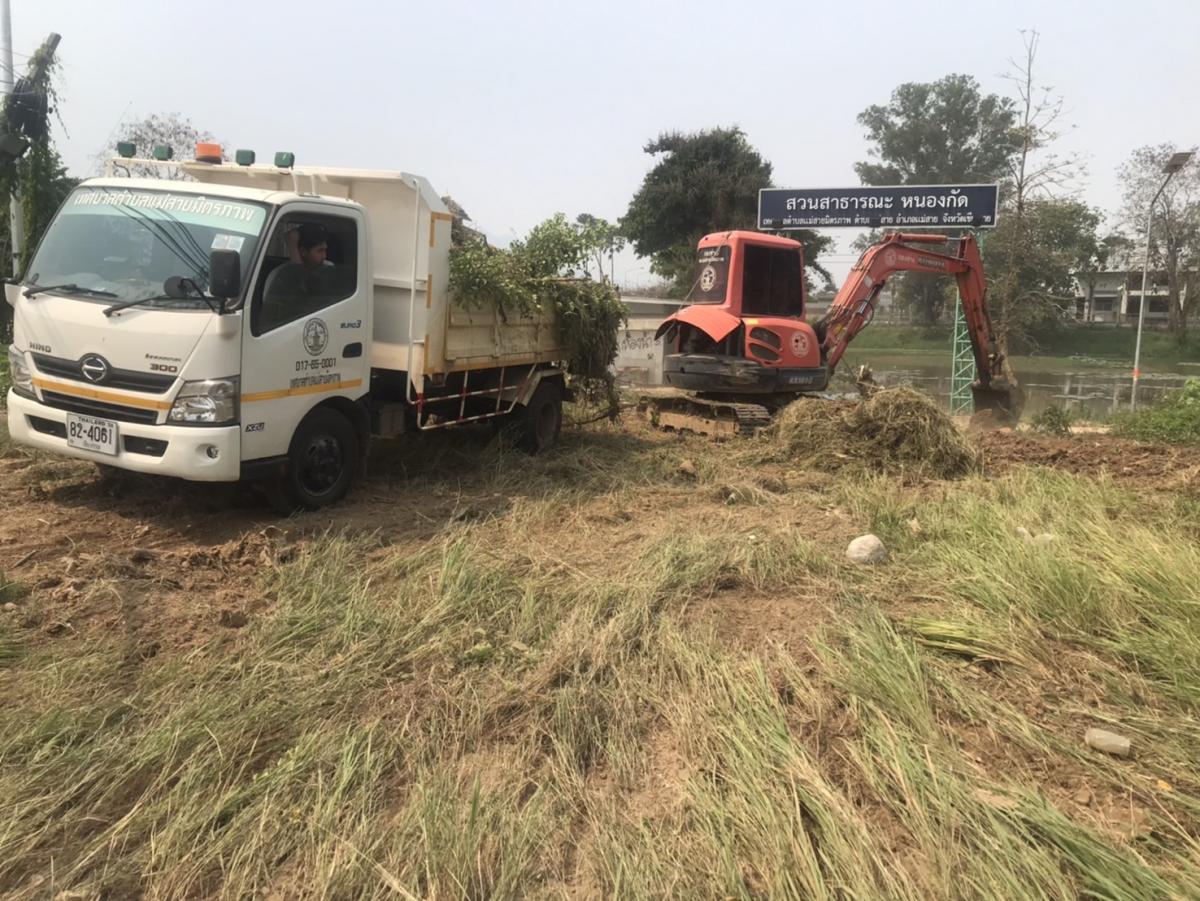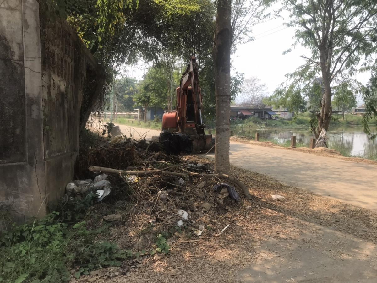 เวลา 14.00 น.ดำเนินการนำเครื่องจักรกลปรับพื้นที่แผ้วถางวัชพิช และปรับทางเชื่อมเพื่อเตรียมการจัดสถานที่ตั้งจุดเฝ้าระวังและอำนวยความสะดวกให้บริการประชาชนช่วงเทศกาลสงกรานต์ บริเวณปากทางเข้าสวนสาธารณะหนองกัด หมู่ที่ 3 บ้านสันผักฮี้ และเก็บกวาดขนย้ายเศษวัสดุข้างทางถนนรอบหนองน้ำสาธารณะหนองกัด