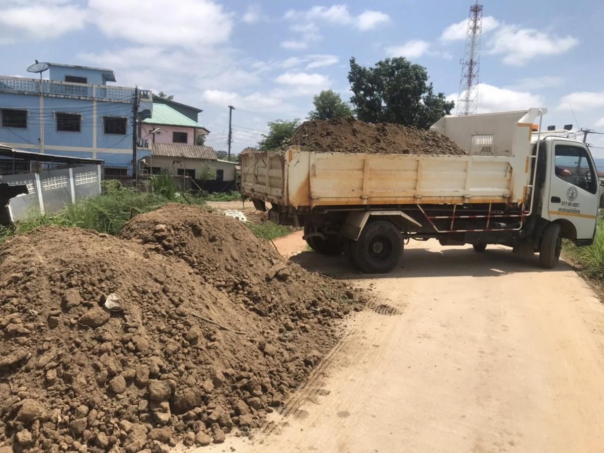 กองช่าง เทศบาลตำบลแม่สายมิตรภาพ เตรียมพื้นที่จัดทำแนวคันดินกันน้ำสายล้นตลิ่ง บริเวณถนนเลียบน้ำสาย ซอยฝั่งสาย1 ตรงข้ามป้อม ชรป.บ้านเหมืองแดงใต้ หมู่ที่ 1 ตามแผนรองรับกรณีการจัดทำแนวกั้นน้ำสายของกรมการทหารช่าง ระยะ2,100-3,600 ม. (เป็นแผนสำรองป้องกันน้ำล้นตลิ่ง แนวที่2)