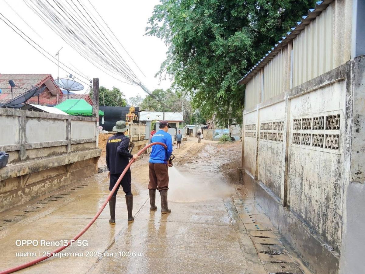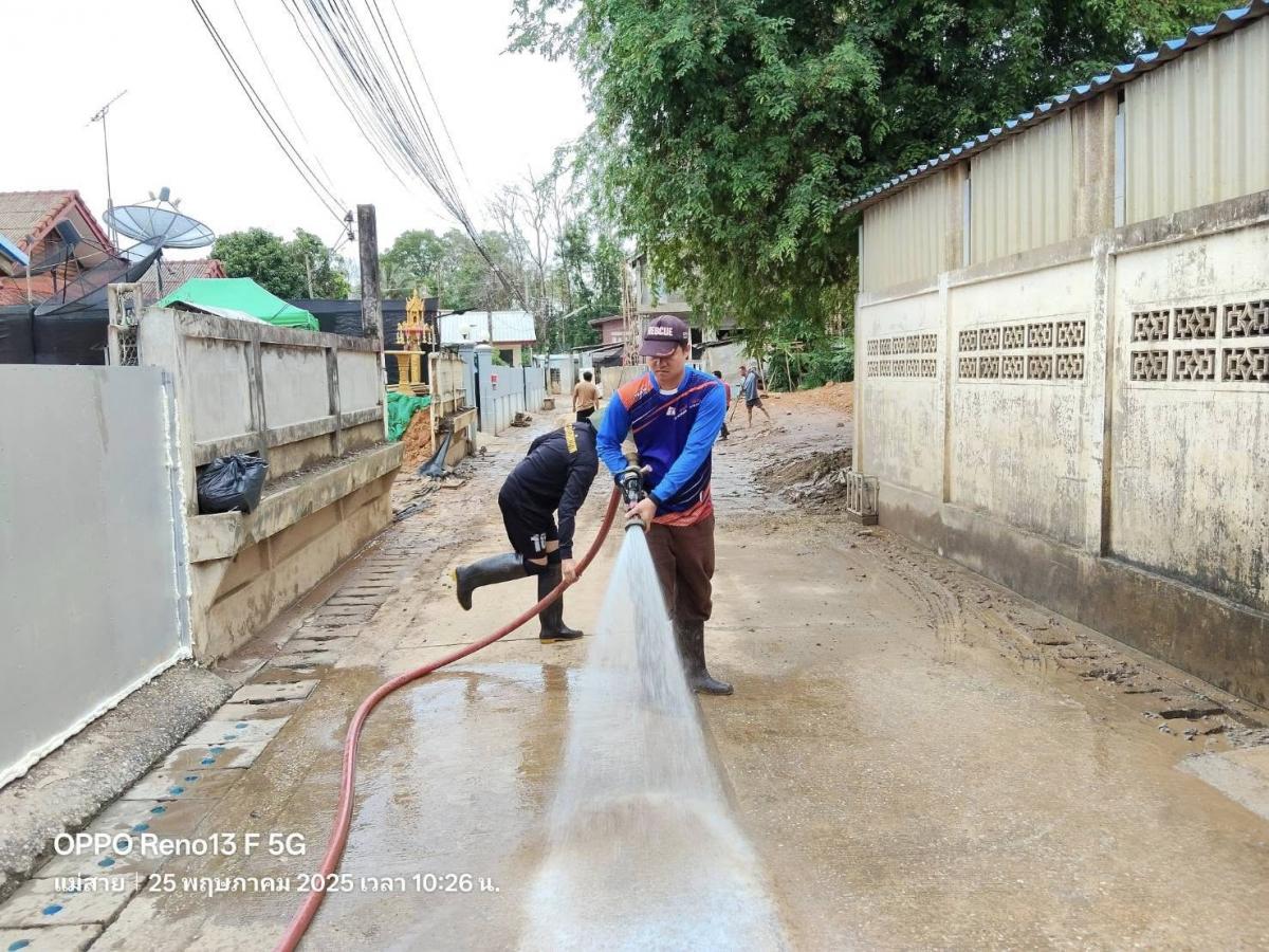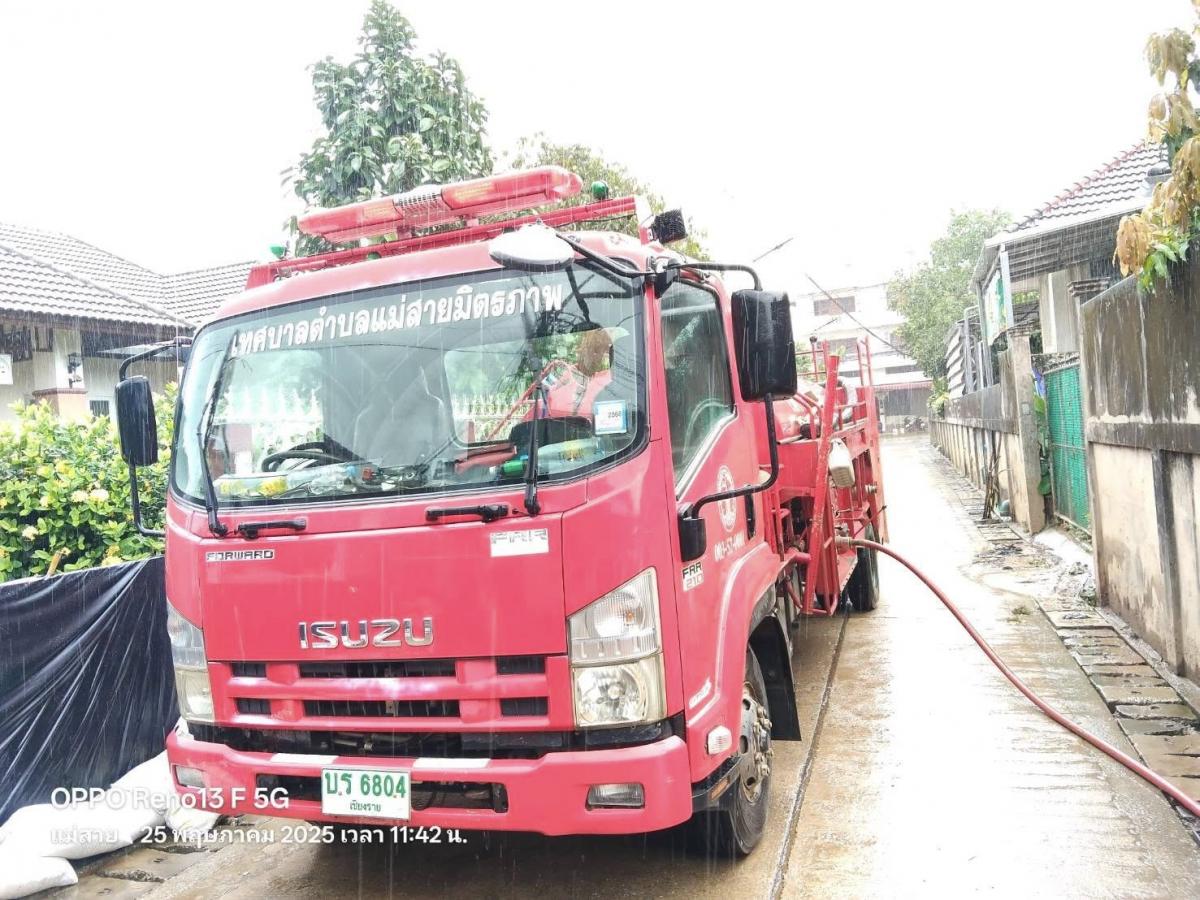 เทศบาลตำบลแม่สายมิตรภาพ มอบหมาย เจ้าหน้าที่งานป้องกันและบรรเทาสาธารณภัย จำนวน 3 คน พร้อมรถน้ำช่วยดับเพลิง จำนวน 1 คัน สนับสนุนภารกิจล้างดินโคลน พื้นที่ #บ้านเหมืองแดง หมู่ที่ 2 ต.แม่สาย ตามที่ได้รับมอบภารกิจจากที่ประชุม ศูนย์บัญชาการเหตุการณ์อุทกภัย อ.แม่สาย ในการประชุมเมื่อเย็นวันที่ 24 พฤษภาคม 2568