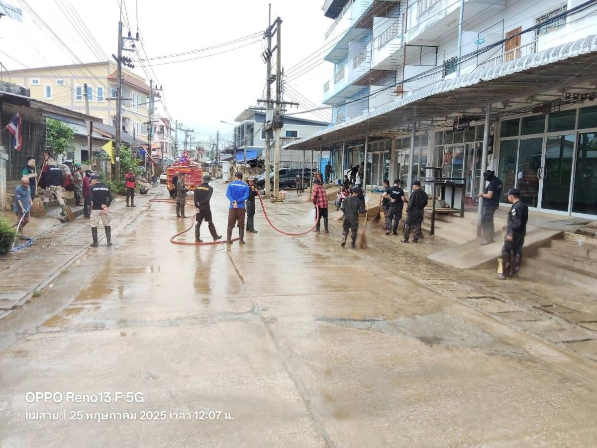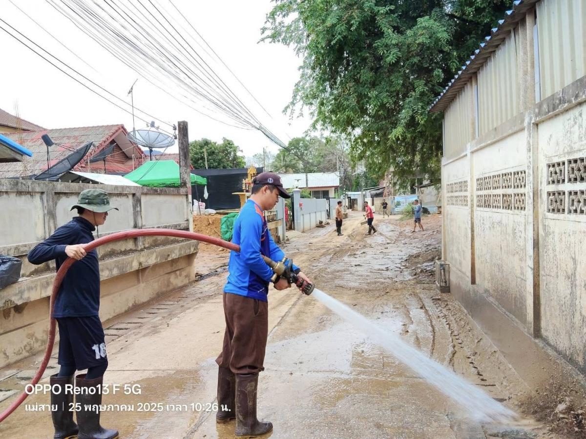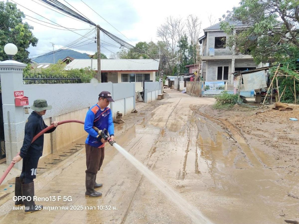 เทศบาลตำบลแม่สายมิตรภาพ มอบหมาย เจ้าหน้าที่งานป้องกันและบรรเทาสาธารณภัย จำนวน 3 คน พร้อมรถน้ำช่วยดับเพลิง จำนวน 1 คัน สนับสนุนภารกิจล้างดินโคลน พื้นที่ #บ้านเหมืองแดง หมู่ที่ 2 ต.แม่สาย ตามที่ได้รับมอบภารกิจจากที่ประชุม ศูนย์บัญชาการเหตุการณ์อุทกภัย อ.แม่สาย ในการประชุมเมื่อเย็นวันที่ 24 พฤษภาคม 2568