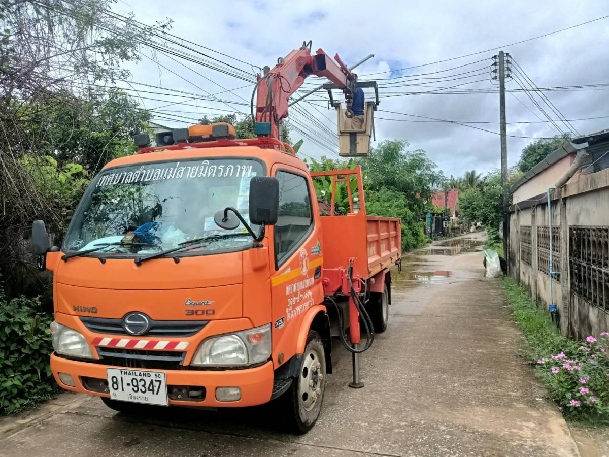 เจ้าหน้าที่กองช่าง เทศบาลตำบลแม่สายมิตรภาพ ลงพื้นที่ดำเนินการซ่อมแซมไฟกิ่งสาธารณะ บริเวณหมู่บ้านเหมืองแดงปิยะพร หมู่ 13 และหมู่บ้านสันทรายใหม่ หมู่ 11 เพื่อซ่อมแซมไฟฟ้าสาธารณะเพิ่มความปลอดภัยของประชาชน และได้รับความสะดวกในการเดินทางสัญจร ลดความเสี่ยงปัญหาอาชญากรรม