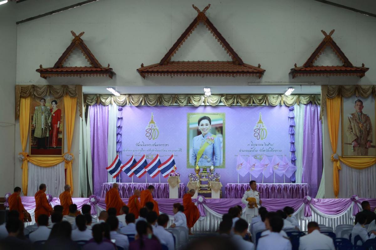 เทศบาลตำบลแม่สายมิตรภาพ โดย ร้อยโทกิตติชัย เจริญยิ่ง ปลัดเทศบาล ปฏิบัติหน้าที่นายกเทศมนตรีตำบลแม่สายมิตรภาพ มอบหมายให้ นายสุบิน ตารินทร์ ผู้อำนวยการกองช่าง พร้อมด้วยหัวหน้าส่วนราชการ พนักงานเจ้าหน้าที่เทศบาล และพนักงานครูเทศบาลตำบลแม่สายมิตรภาพ เข้าร่วมพิธีวางพานพุ่มเงินพานพุ่มทอง เฉลิมพระเกียรติสมเด็จพระนางเจ้าสุทิดา พัชรสุธาพิมลลักษณ พระบรมราชินี และพิธีทำบุญตักบาตรถวายเป็นพระราชกุศล เนื่องในโอกาสวันเฉลิมพระชนมพรรษา ร่วมกับหน่วยงานราชการ องค์กรปกครองส่วนท้องถิ่น และประชาชนในพื้นที่ เพื่อแสดงความจงรักภักดีและสำนึกในพระมหากรุณาธิคุณอย่างหาที่สุดมิได้