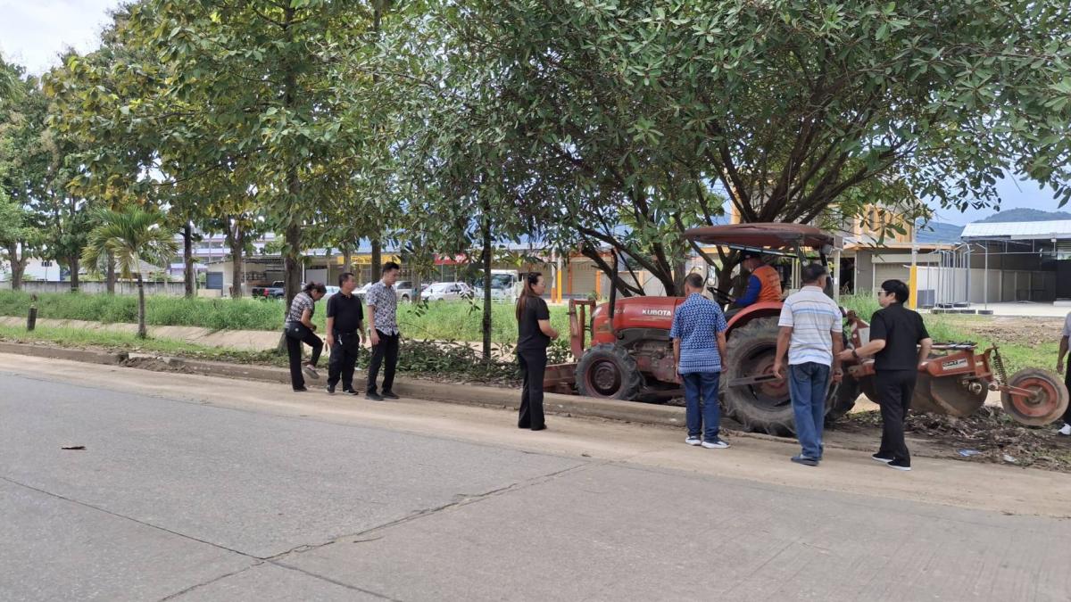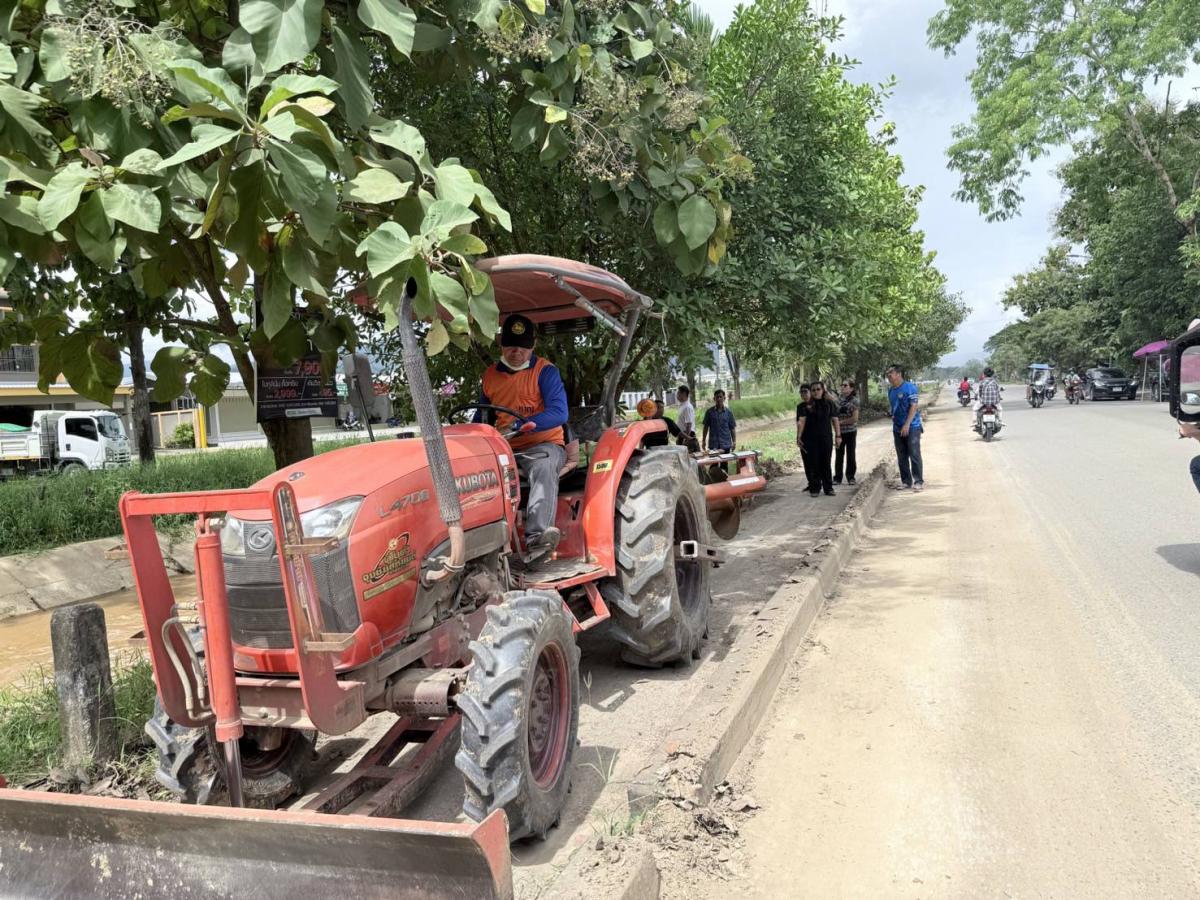 พร้อมด้วยคณะผู้บริหาร และสมาชิกสภาเทศบาล ลงพื้นที่นำรถไถปรับถนนที่มีดินติดและเป็นหลุมขรุขระ บริเวณถนนเลียบคลองชลประทาน เส้นเหมืองแดงปิยะพร - ป่ายาง (ถนนเลียบคลองชลประทาน 1L-RMC1)