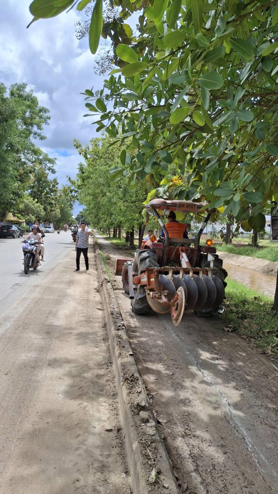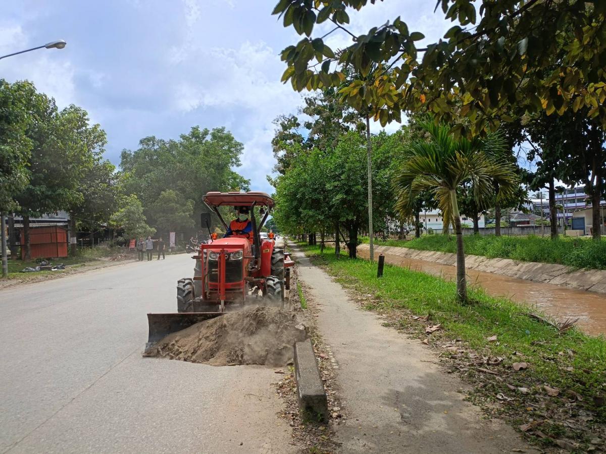 ลงพื้นที่นำรถไถปรับถนนที่มีดินติดและเป็นหลุมขรุขระ บริเวณถนนเลียบคลองชลประทาน เส้นเหมืองแดงปิยะพร - ป่ายาง (ถนนเลียบคลองชลประทาน 1L-RMC1)