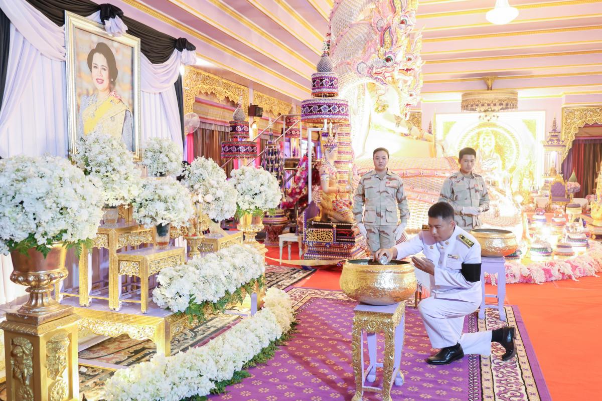 และนายจารุวิทย์ ปัญญาหาร เจ้าพนักงานธุรการชำนาญการ ร่วมพิธีถวายน้ำสรงพระบรมศพ เบื้องหน้าพระฉายาลักษณ์ สมเด็จพระนางเจ้าสิริกิติ์ พระบรมราชินีนาถ พระบรมราชชนนีพันปีหลวง ณ วัดพระธาตุดอยเวา อำเภอแม่สาย จังหวัดเชียงราย โดยมี นายวรายุทธ ค่อมบุญ นายอำเภอแม่สาย เป็นประธานในพิธี