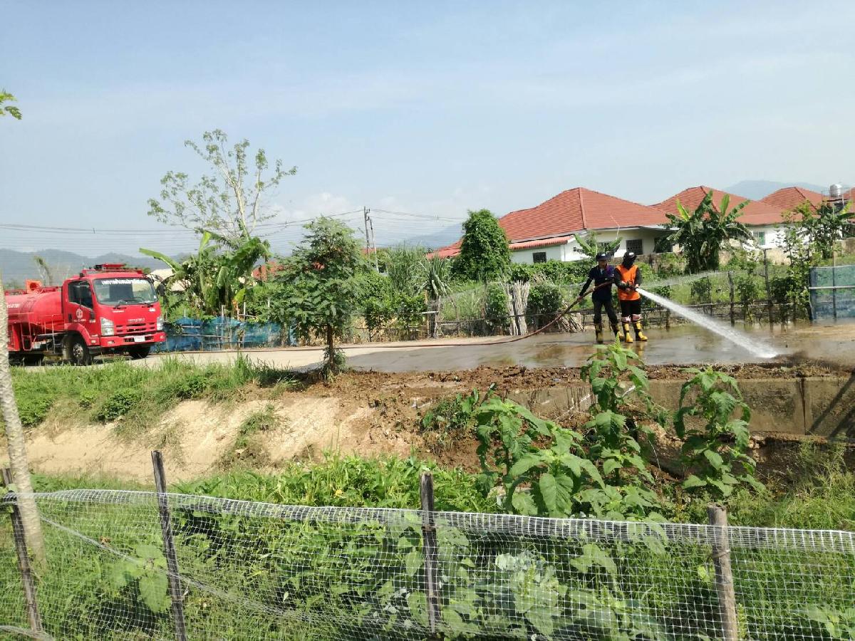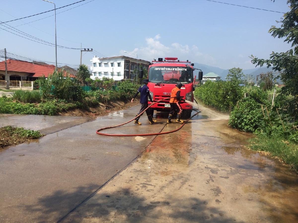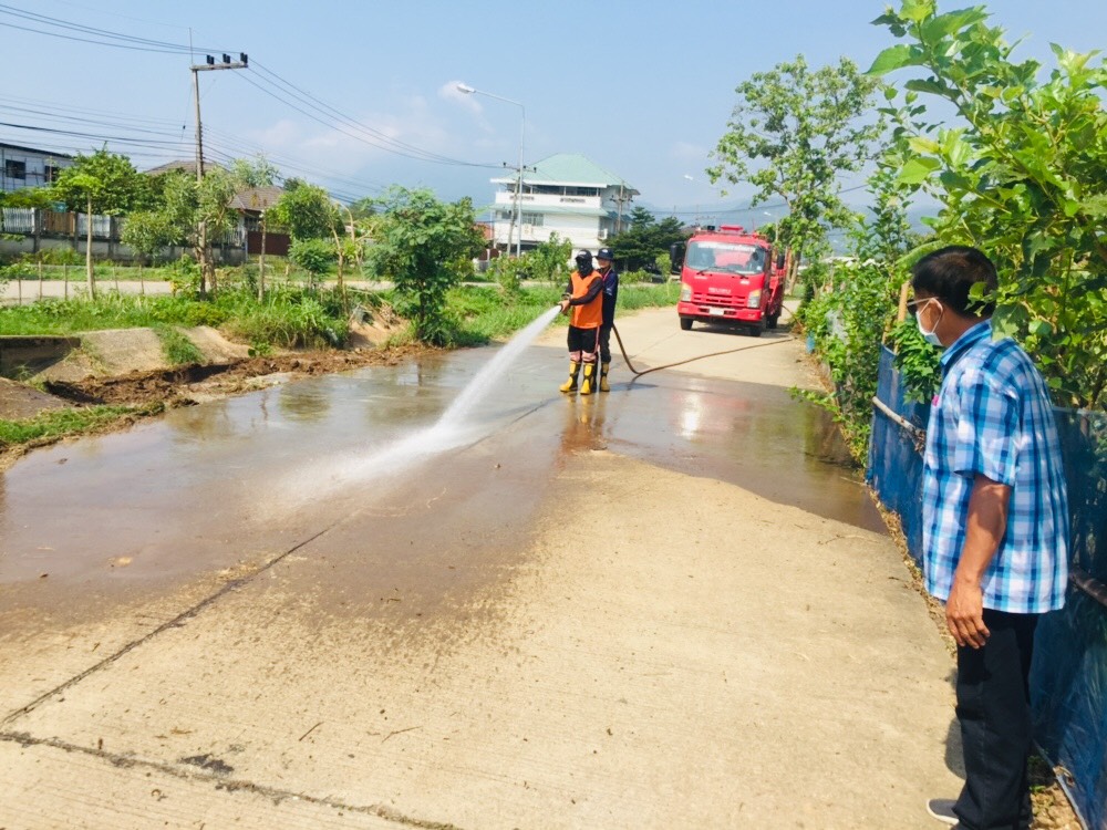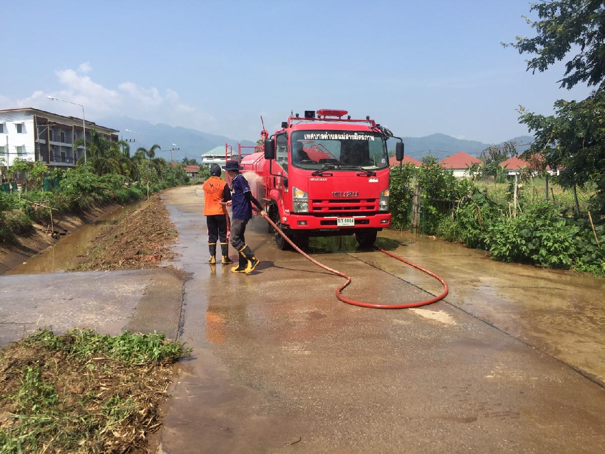 สำนักปลัดเทศบาล นำรถบรรทุกน้ำขนาด 6000 ลิตร ลงพื้นที่ล้างเเละ