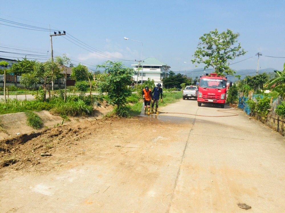 ลงพื้นที่ล้างเเละทำความสะอาดถนนเส้นคลองชลประทานในหมู่บ่านป่ายางชุม หมู่ที่ 6(ธนธานี)