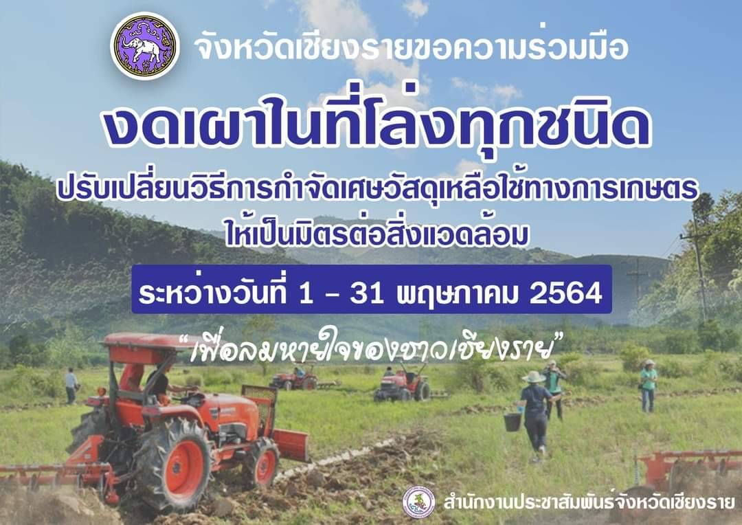 #เเจ้งประชาสัมพันธ์ จากจังหวัดเชียงราย เรื่อง... งดเผาในที่โล่งเเจ้งทุกชนิด จนถึงวันที่ 31 พฤษภาคม 2564